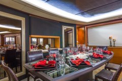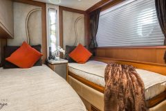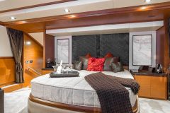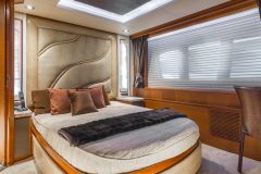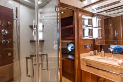 Total cabins:5, total berths:10,master has king bed with ensuite bathroom,two VIP cabins have double beds with ensuite bathrooms and two cabins have twin beds with ensuite bathrooms. Each cabin has a full modern equipment for audio visual entertainment system. Salon and Dining are perfect to welcome 12 guests.Cabin arrangement of 105 YCG?