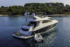 Advertised by Amwax Prime, the breathtaking charter yacht 2 DRUNK is a 69 ft yacht. The main attractions of 2 DRUNK are her elegant profile and inviting socializing areas. She was constructed by the ship builder Sunseeker in 2012. A well-done refit was completed in 2020. The ingenious yacht layout features 4 cozy cabins and easily accommodates up to 8 guests.
