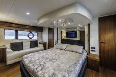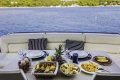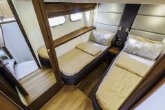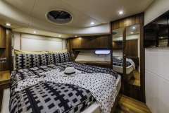 This 21-meter-long Sunseeker yacht offers accommodation for 8 guests in four cabins. She features the full-beam Master cabin, a VIP cabin, both en-suite, and two twin cabins with single beds. One of the twin cabins is with bunk beds, ideally for the children.