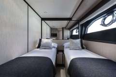 Further forward is the Queen VIP which is slightly elevated by a small step entry. The bed is positioned starboard to port with a window at the head of the bed affording superb natural light that traditional V-berths do not have. Ensuite bathroom features a shower stall and single sink.