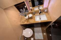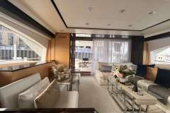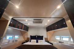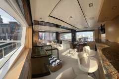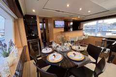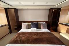 With unobstructed breathtaking views , the interior feels like you are in a much larger yacht. The interior was fully customized all designed for the avid charter guest. This 86 is equipped with a large full beam Master stateroom with his and her ensuite facilities as well as 3 comfortable guest staterooms . This vessel cruises at comfortable speed of