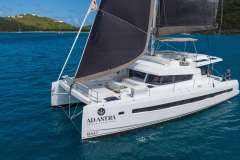 Ad Astra will accommodate 10 charter guests in 5 spacious queen cabins. She has black sails, eight extra powerful underwater lights, 60hp outboard dingy, flexiteak on both the aft and front of the yacht, solar panels, air conditioning, water maker, ice maker, full sized refrigerator, a fully customizable menu, Caribbean made ecofriendly and reef safe toiletries, a bar stocked to guest preference, coffee/espresso machine, rendezvous scuba diving, snorkeling gear, underwater scooters, wakeboard, stand up paddle board, ski tube, 10 ft. floating dock, pool noodles, fishing gear, board and card games, television in the salon, Fusion 3