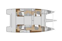 1 Owner's suite with King size bed (features sofa & TV)3 Double cabins with Queen size bed.