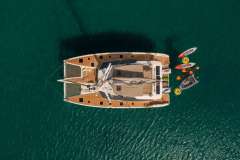 S/Y AETHER epitomizes luxury in a catamaran. Featuring an expansive flybridge with an authentic ocean terrace and a forward cockpit with a jacuzzi, she offers unparalleled comfort and style. Whether you’re seeking the thrill of sailing or the tranquility of lounging on sunbathing beds, S/Y AETHER provides the perfect setting.