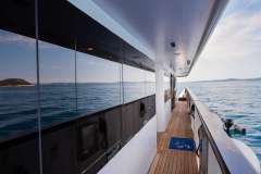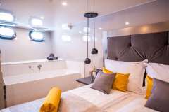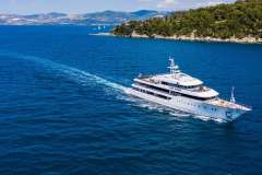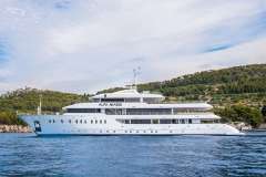 At 52 meters, Alfa Mario is one of the largest Croatian yachts of its type. This 18 cabin yacht can accommodate up to 36 people, hosted by 9 crew. You can enjoy the jacuzzi, sauna, and gym on deck. To enjoy a relaxed vibe, there is a big lounge bar with a piano and a well-stocked bar in the salon.