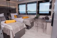 2 Convertible cabins (double or twin) with 2 single beds. Private bathroom with shower box and home-type toilet.