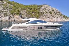 Presented by Amwax Prime, the impressive charter yacht ALKYONE is a 77 ft yacht. The most attractive features of ALKYONE are her generous space and interconnection with the sea. She was completed by the renowned boatbuilder Azimut in 2017. A comprehensive refit was completed in 2024. The spacious yacht layout features 4 generous cabins and comfortably accommodates up to 9 guests.