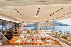 Step aboard the NEW Fountaine Pajot 80 S/Y ALOIA 80 and experience the epitome of luxury in a catamaran. With its spacious flybridge offering an authentic ocean terrace and a forward cockpit with ample seating, this vessel is designed to provide the ultimate in relaxation and enjoyment. Whether you want to feel the thrill of sailing or simply unwind on the decadent lounges and sunbathing beds, S/Y ALOIA 80 has it all.