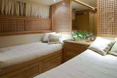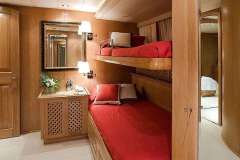 Owner's suite: Full width stateroom with king size bed, ensuite bathroom and walk-in wardrobe.Guests: Two double staterooms, one twin stateroom (with one additional pullman berths), one single stateroom (with