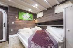 Cabin (11.00 m2) with a double bed (160*200 cm). Private bathroom with shower box and a home type toilet. Cabin (7.00 m2) with a double bed (160*200 cm). Private bathroom with shower box and a home type toilet.Cabin (7.00 m2) with a double bed (160*200 cm). Private bathroom with shower box and a home type toilet.Cabin (7.00 m2) with a double bed (160*200 cm). Private bathroom with shower box and a home type toilet.Cabin (15.00 m2) with a double bed (180*200 cm). Private bathroom with shower box and a home type toilet. Cabin (15.00 m2) with a double bed (180*200 cm). Private bathroom with shower box and a home type toilet.Cabin arrangement of Anđeo?