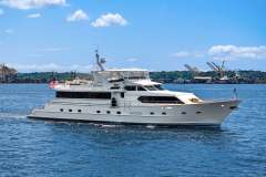 Introduced by Amwax Prime, the astonishing charter yacht ANDIAMO is a 102 ft yacht. The main attractions of ANDIAMO are her generous space and inviting socializing areas. She was constructed by the famous yacht builder Broward in 1991. An elegant refit was finalized in 2024. The well-planned yacht layout features 3 cozy cabins and comfortably accommodates up to 6 guests.