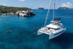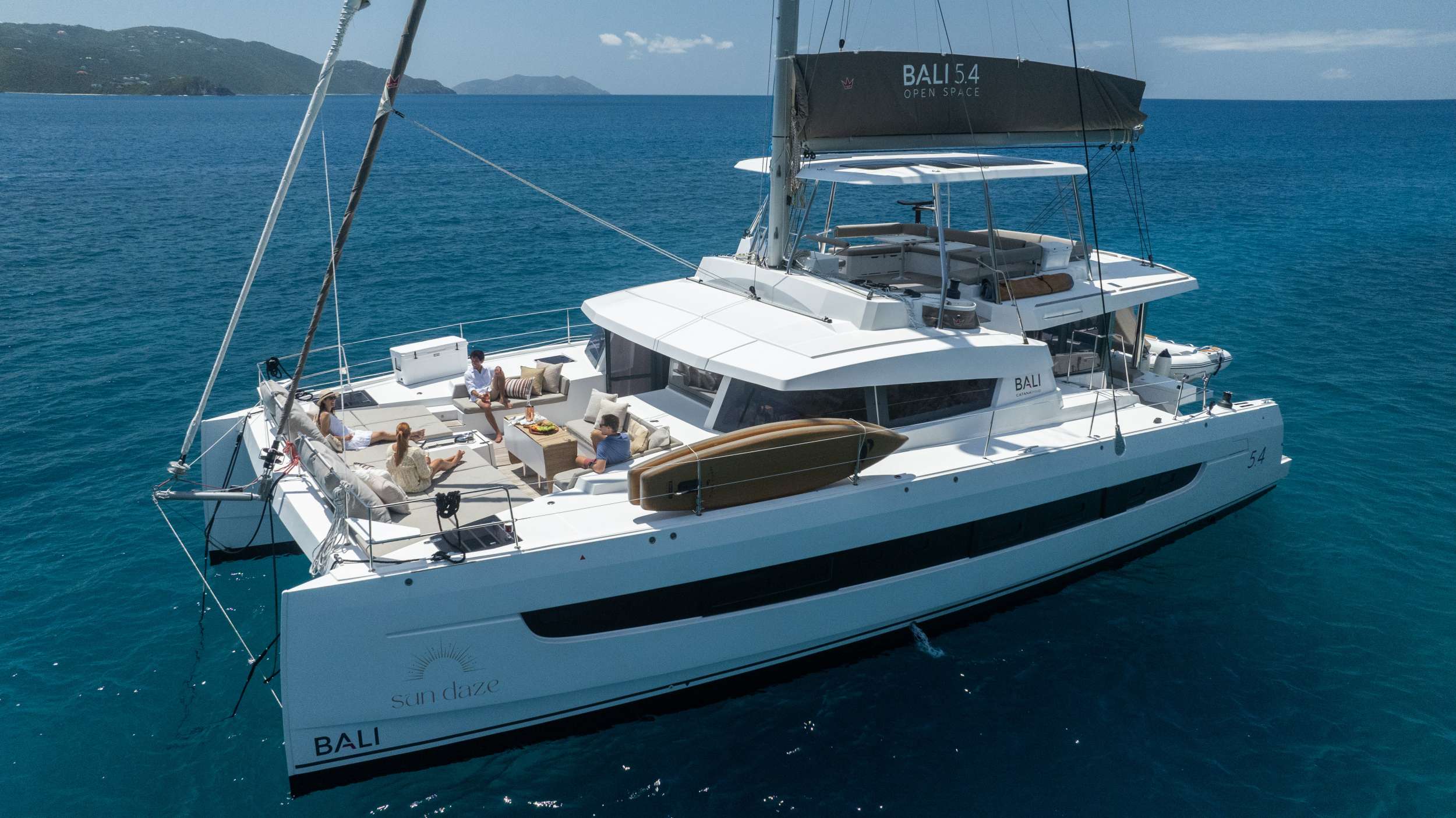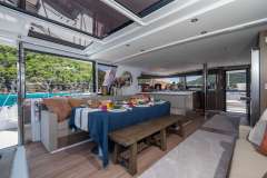 Bali catamarans are known and appreciated for their unparalleled success in blending luxury, space, and performance; producing a sailing experience that is unparalleled. This new design further capitalizes on that reputation with the advent of the "Bali garage door" that is the centerpiece of the yacht. It allows for the aft wall of the yacht to simply disappear, opening up the back of the yacht to an unobstructed view of paradise. This also affords indoor/outdoor dining options and gives the ever-present Caribbean breeze ample opportunity to make its way through the yacht with ease.