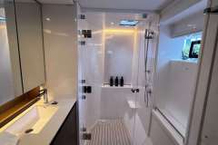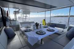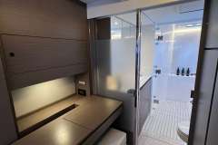 Andiamo has the ideal layout for anyone looking for more outdoor living space as she comes equipped with a flybridge that includes a lounge area, table, sun-bed and optional exterior speakers and shade awning. Access is provided by stairs leading up from the aft cockpit. The entire makeup of Andiamo will provide you with a stylish, spacious and luxury charter experience boasting a sleek and ample design both interior and exterior.