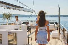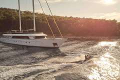 With its elegant lines and beautiful sails the luxury sailing yacht Anima Maris will be a real beauty on the sea, proudly carrying its name and representing the soul of the sea and sailing in its full meaning. Exceptionally spacious in interior and exterior, this yacht will have the most spacious cabins on this type of yachts in Croatia. With deep earthy color shades, warm lighting, dark wood and dark marble details this yacht will unite classic contemporary interior with a touch of tradition, creating warm and welcoming atmosphere. Outside area continues the same color palette and with two dining areas, jacuzzi and plenty of cushioned areas for you to lay down and just relax, it represents ideal place for you to spend cruising and discovering beauties of the Adriatic.