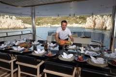 APA (Advance Provisioning Allowance): 35% of charter fee paid with the balance for covering running costs during the charter: fuel, food and beverages for the Charter Party, port and marina fees, fuel for tender operated water toys (donut, water ski, wakeboard, jet ski), national park entrances, custom fees and charter licenses if chartered outside of Croatia, shipping agentโs fees and anything else that guests might need or require while on charter. A strict set of accounts is held by the captain throughout the charter and any funds not spent are refunded to the client in full.