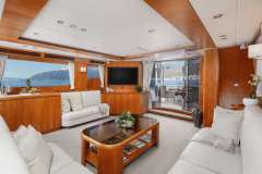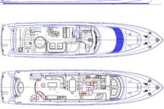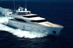 This Horizon 97 is a wide body version of the 97 RPH with four large cabins with en suite heads forward, a huge country kitchen and galley, and a beautiful formal dining area. ANNABEL boasts the latest Bose sound entertainment systems, 9 TVs, CDs, a Jacuzzi pool and a tender with 80hp outboard.