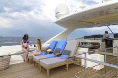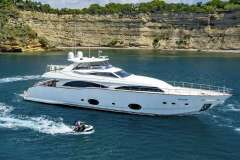 Launched in 2008 by Italian shipbuilder Ferretti group, motor yacht ANNE MARIE features elegant interiors, spacious deck areas, salon and dining designed as an open space. A cozy lounge featuring sofa, coffee table and entertainment system is aft. Forward is a formal dining table seating up to 9 guests.