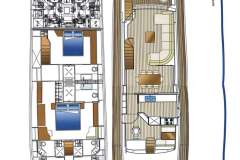 Antarah provides elegant and spacious accommodation to up to 9 guests in 4 well appointed cabins all located on the lower deck: one Master cabin, one VIP cabin, one Double cabin with pullman bed and one Twin cabin with 2 single beds.