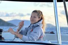 Apricity will accommodate 8 charter guests in 2 spacious queen cabins and 1 additional queen cabin that shares space with twin bunk beds. That space can be used for luggage storage in the case of 6 guests or provides a shared cabin for parents and small children. She has a hard top, solar panels, air conditioning, a water maker, ice maker, full-sized refrigerator, a fully customizable menu, Caribbean-made eco-friendly and reef-safe toiletries, a bar stocked to guest preference, coffee/espresso machine, snorkeling gear, underwater scooters, subwing, wakeboard, water skis, stand up paddle boards, towable water tube, 10 ft. floating dock, pool noodles, fishing gear, board and card games, a television in the salon, Fusion 3 Bluetooth enabled sound system and Apricity giveaways.