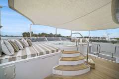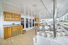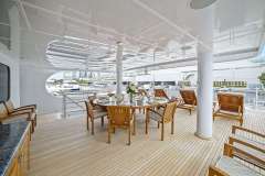 ARTEMIS’s exterior living spaces are vast allowing for true enjoyment of the al fresco lifestyle. The sun deck is a spectacular space to spend your day. Take in the 360 degree view while soaking in the Jacuzzi, sipping on a drink at the bar and enjoying a meal prepared on the barbecue. ARTEMIS offers impeccable spaces for al fresco dining on both the main deck aft and bridge deck aft. Lounging in the sun also can be enjoyed on the bridge deck aft.