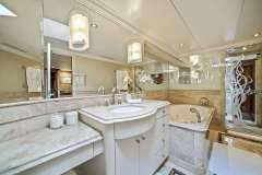 ARTEMIS offers six well-appointed staterooms for up to twelve guests. Her full-beam master suite on the main deck offers a plush king-size bed, private study, walk-in closet, and his-and-hers en-suite baths. Additional accommodations can be found below deck include two king staterooms, two queen staterooms and a twin stateroom. Each stateroom is complete with its own private en-suite bath with full-size shower stall.