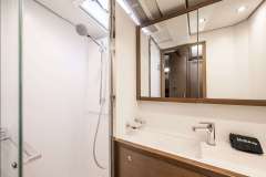 Atlantia’s all-teak decks create an elegant setting, while her expansive bow and stern lounge areas provide the perfect spaces to unwind. Outdoor amenities are second to none, with two refrigerators, sinks, and an ice maker to ensure guests are always refreshed. At the helm, cutting-edge navigational equipment and state-of-the-art technology ensure a seamless and safe voyage.
