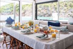 Main deck has a bright and airy main salon (fully air-conditioned) as the galley direct access to the forward cockpit lounge area.