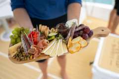 free movement through the yacht. A walk up to the flybridge unveils a seating area perfect for cocktails and taking in sunsets. There is also another area for sunbathing on the flybridge where you can take in the sights of the islands from the highest vantage point on the yacht.