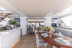 Presented by Amwax Prime, the breathtaking charter yacht AURA is a 65 ft yacht. The most valuable elements of AURA are her elegant profile and culinary experience. She was delivered by the famous yacht builder Lagoon in 2023. The ingenious yacht layout features 4 large cabins and easily accommodates a group of 8 guests.