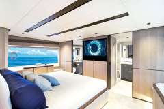The Master Cabin is full beam and located forward of the Main Deck, with a King-size bed
