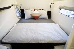 Cabins share heads. One on starboard one on port. Crew cabins are in the forepeak.