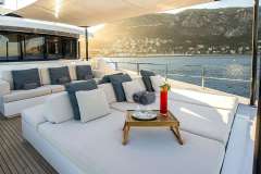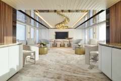 Integrated A/V system allowing control of: AppleTV / Airplay, Seatel Satellite TV, Kaleidascape media storage/player, Entertainment (CCTV, Air con, lights, blinds/curtains control), for use in every guest cabin, sky lounge, sun deck, main salon, crew mess and captain's cabin