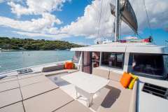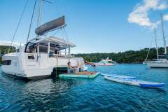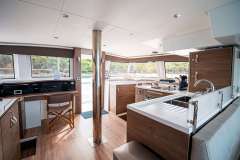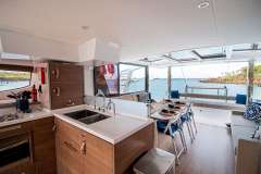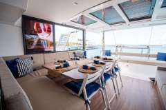 Bali catamarans are renowned for their exceptional blend of luxury, space, and performance, and this design further enhances that reputation. The standout feature is the "Bali garage door," which allows the aft wall of the yacht to retract, creating an uninterrupted vista of your surroundings. This design element also facilitates indoor/outdoor dining and invites the refreshing Caribbean breeze to flow freely through the yacht.