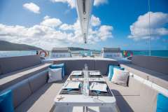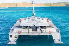 Great sailing performance, combined with beach club styling and a carefully conceived layout, create a versatile living arrangement for eight to ten guests. BELLA VITA's interior is large and contemporary, with bamboo wood flooring and accent lighting in all the right places. She offers guest accommodations via four chic staterooms, with a master suite, a double cabin and two double/twin convertible cabins. A Lower deck Twin Cabin is also available for family charters with private head and use of the Day Head/Shower. Best suited for families.