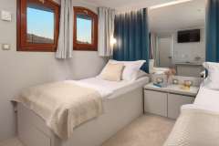 4 Convertible cabins (double or twin) with 2 single beds. Private bathroom with shower box and home-type toilet.
