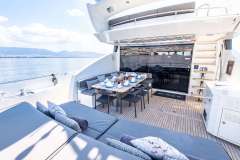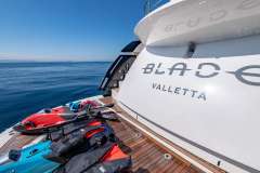 Introduced by Amwax Prime, the impressive charter yacht BLADE 6 is a 93 ft yacht. The promiment features of BLADE 6 are her most appealing features and interconnection with the sea. She was completed by the ship builder Sunseeker in 2009. A well-done refit was finalized in 2022. The spacious yacht layout features 4 large cabins and easily accommodates up to 8 guests.