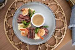 LOCAL FARE: Includes: 7 breakfasts, 5 lunches & 5 dinners. Requires 2 lunches and 2 dinners ashore at client expense.