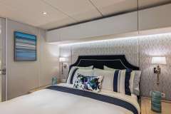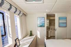 • 4 x guest cabins with full ensuite bathrooms with rain showers. Each cabin has a full walk around, floor level queen berth.