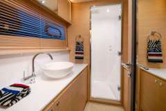 Additionally, the spacious layout is designed to make excellent use of every area on board. Ultimately, the Aquila 54 strikes the perfect balance between looks and functionality, offering a smooth, enjoyable ride suitable for both comfort and adventure. With its vast living areas and elegantly decorated interior, "BY MY SIDE" is an excellent choice for a relaxing charter holiday in the Adriatic.