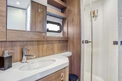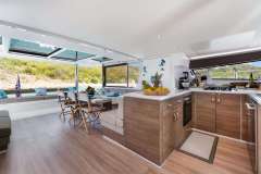 C SISTERS, a brand-new Bali sailing catamaran, showcases the remarkable design expertise of Bali. From the moment you step into the exquisite cockpit with wood floors, a dining table, and a cozy lounge bench, you know you're in for a unique charter experience. Ascending to the flybridge treats you to awe-inspiring views of the turquoise lake and the sails from every angle, making it an ideal spot for sunset cocktails, light fare, and leisurely reading. The spacious and bright main salon is surrounded by abundant windows, while all four guest quarters offer roominess and ample natural light through numerous windows. Each stateroom features a queen-sized bed with a private bathroom and shower. The high-end finishing work throughout the vessel complements its exceptional quality. C SISTERS provides a spectacular experience, with a variety of distinct settings that cater to everyone's preferences.