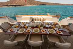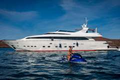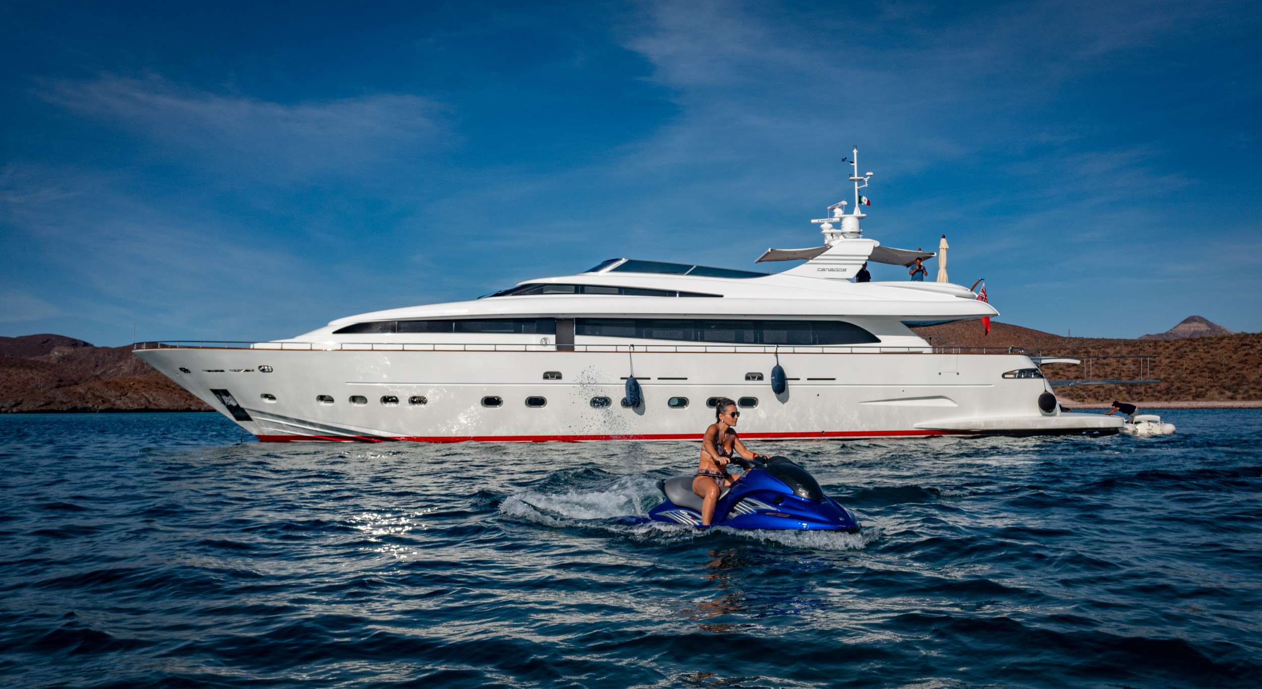 Introduced by Amwax Prime, the breathtaking charter yacht Cada Uno is a 116 ft yacht featuring a jetski. The main attractions of Cada Uno are her impeccable styling and alfresco dining areas. She was completed by recognized shipbuilder Canados in 2007. A well-done refit was finalized in 2021. The spacious yacht layout features 4 generous cabins and comfortably accommodates up to 10 guests.