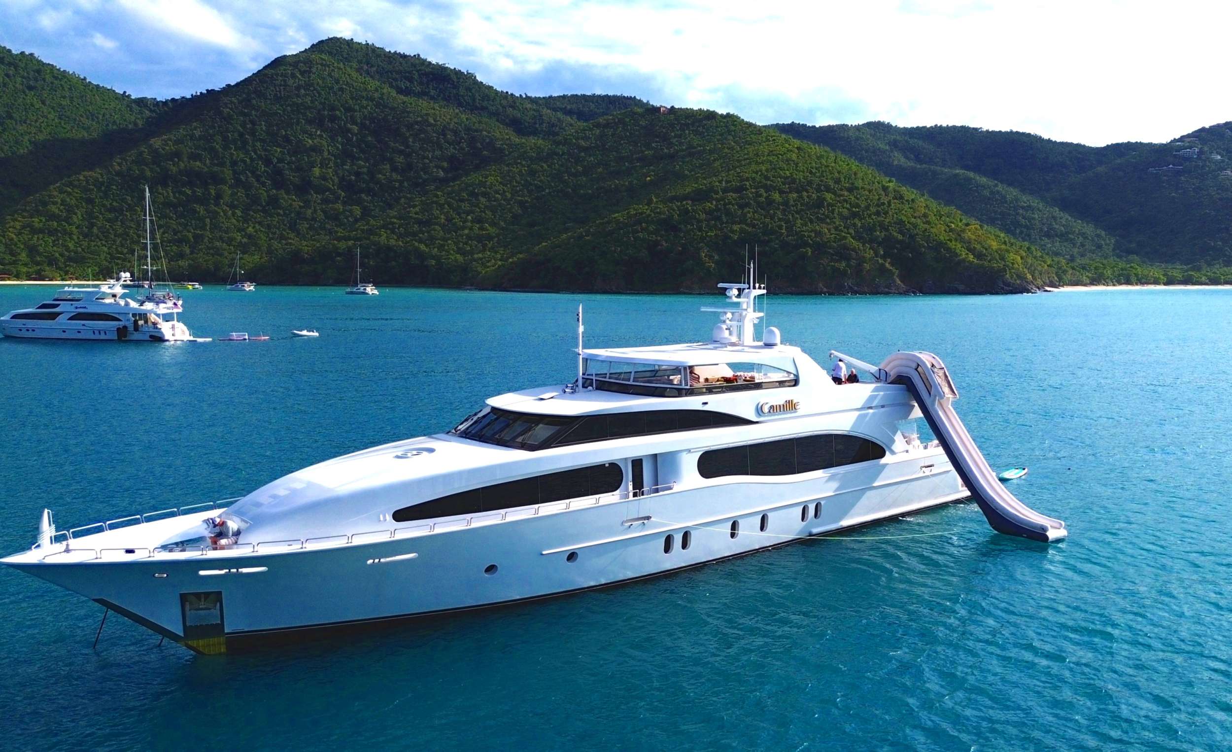 Presented by Amwax Prime, the impressive charter yacht CAMILLE is a 124 ft yacht featuring a hot tub. The primary distinction of CAMILLE are her generous space and inviting socializing areas. She was completed by the famous yacht builder Broward in 2007. An elegant refit was delivered in 2019. The expansive yacht layout features 5 generous cabins and comfortably accommodates up to 10 guests.