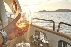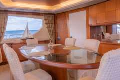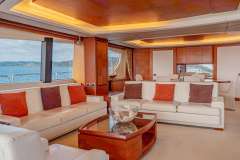 Further enhancing the experience are amenities like a swim platform, deck shower, Jacuzzi, and spacious sunbeds, accompanied by a barbecue grill and alfresco dining area. Once aboard, the allure of land diminishes as the yacht comfortably accommodates up to eight guests across four staterooms with en-suite baths, attended to by a seasoned crew of four. Whether embarking on a leisurely day trip along the inter-coastal waters or embarking on a grand charter adventure, this yacht promises an unmatched experience.