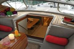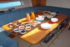 CAP II can accommodate 6 guests in three spacious double cabins (two forward and one midship) each with ensuite heads and cupboard space. The two forward cabins can be converted into a large primary suite due removable dividing wall that can form one large cabin.Air conditioning throughout.