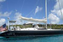 A performance cruiser, CAP II is more than a fantastic sailing yacht; she is luxurious and comfortable, and a joy to be aboard. She is operated from her aft cockpit, leaving the center cockpit for her guests to sun, sightsee and enjoy al fresco meals. A powerful sailing machine, CAP II is very stable, offering her guests a smooth, comfortable ride. Luxurious cruising accommodations aboard CAP II are for six guests in three well appointed double staterooms with ensuite bathrooms. You set the pace and itinerary aboard CAP II; your professional, courteous crew will do the rest.