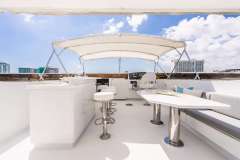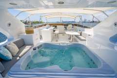 After adding new appliances, furniture, flooring, lighting, and sleek headliners, Carpe Diem now features a brand-new Jacuzzi on the sun deck. Additionally, the sun deck has seating with a bar, four fixed stainless-steel barstools, and a double Bimini top on the flybridge for the perfect amount of shade.
