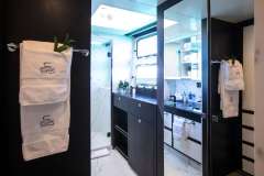 Cartouche is accommodating up to 8 guests in 4 ensuite cabins: All 4 size beds are 190 - 160.Large deck level to King master cabin with Ipad control AV and TV. 3 Queen size beds in guest cabins. Twin sinks, full size showers and dressing area. Queen size beds in guest cabins