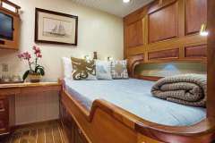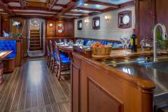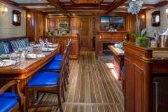 All guest accommodation is fitted with a nod to Columbia’s history in the fine wood panelling and teak and maple soles, with every modern convenience in her ensuite quarters and luxuriously proportioned high overheads benefiting from plentiful natural light.1 master stateroom with double bunk and Pullman, marble-clad ensuite with sit-down jacuzzi bath and shower