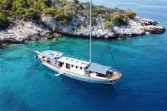 This traditional motor sailer can accommodate up to 8 guests in 4 cabins all with ensuite bathrooms