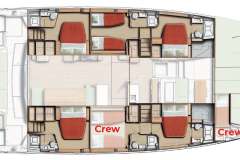 CREWED CHARTER ONLY Skipper + hostess + cook 21/06-19/07; 23/08-13/09: 34.000€ VAT INCLUDED 19/07-23/08: 36.000€ VAT INCLUDED REST OF THE SEASON: 29.000€ VAT INCLUDED MANDATORY EXTRAS: - APA 25% (provisions, final cleaning, bed linen and towels, fuel etc.)Cabin arrangement of CRAZY BABY TOO?